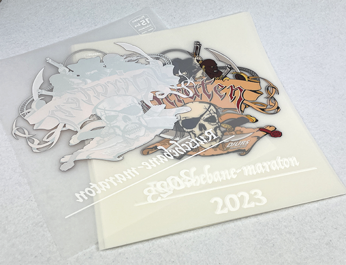 Positionieren Sie den Transfer auf Ihrem Kleidungsstück. Pressen Sie den DTF-Transfer 10 Sekunden lang bei 150 °C und ziehen Sie ihn anschließend sofort ab. Sparen Sie Produktionszeit!